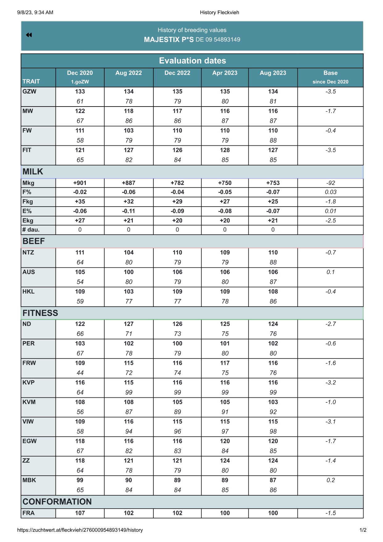 Pozrite si históriu vývoja plemenných býkov, ktorých sme zaregistrovali nedávno (MAHOMES, MAJESTIX a WAALKES) a všimnite si vývoj ich plemenných hodnôt.(pričom WAALKES užpatrí do kategórie preverených býkov). Na záver pridávam aj horúceho kandidáta na registráciu v tomto roku, býka WILLENSKRAFT, ktorý je jeden z mála nositeľov žiadaných kazeínov A2A2 a kappa kazeínu BB.