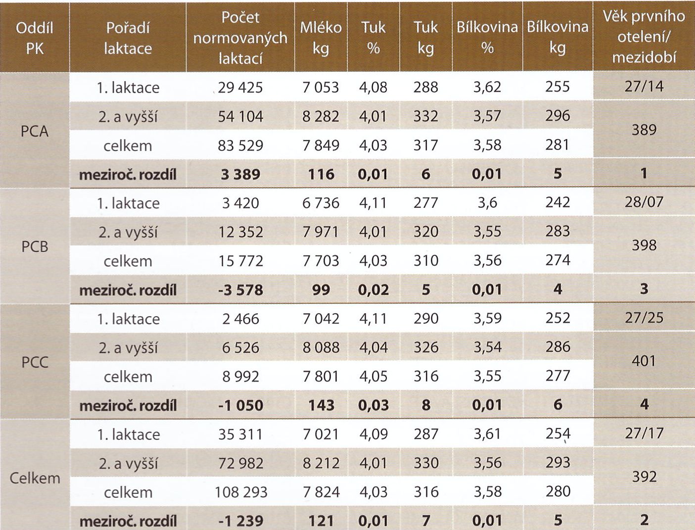 Dojnice v hlavnom oddiele PK dosiahli úžitkovosť 7849 kg mlieka s tučnosťou 4,035 a s bielkovinou 3,58%.